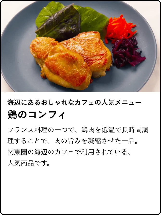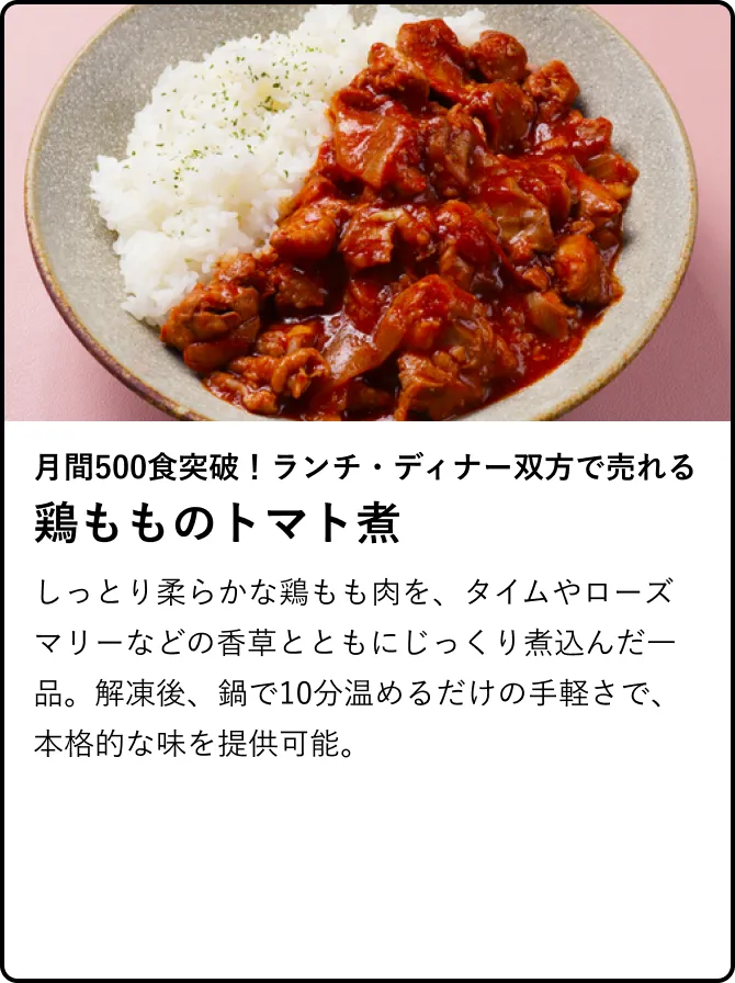 あなたのお店のレシピをお預かりし、 シコメルがオーダーメイドで味を再現。 仕込みが終わった状態でご納品します。